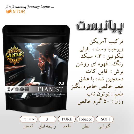 توتون PIANIST – پیانیست وینتور سبک با گیرایی آرام و با طعم دهی خاص وینتور و نیکوتین 0.3