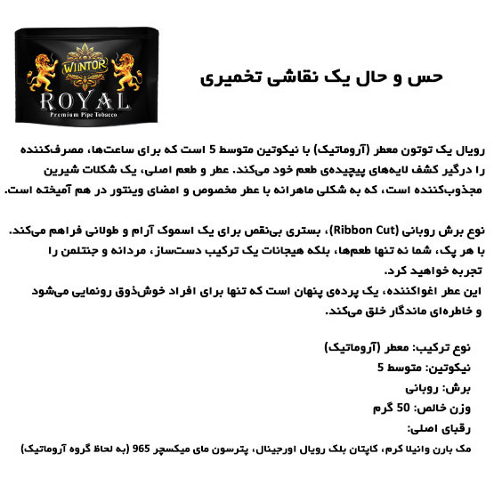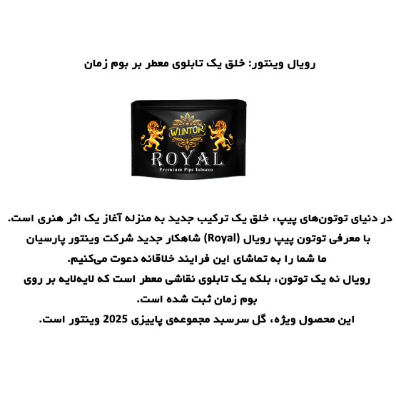 با معرفی توتون پیپ رویال (Royal) شاهکار جدید شرکت وینتور پارسیان، ما شما را به تماشای این فرایند خلاقانه دعوت میکنیم.